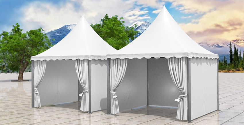 尖頂篷房有多種可供選購的配置,例如:玻璃墻體、玻璃門、地臺板、布幔內(nèi)飾等。尖頂篷房除了單獨使用外,還可以將它用排水槽連接起來組成更大的面積,形成多樣的造形,在戶外活動應(yīng)用中更加精彩。
