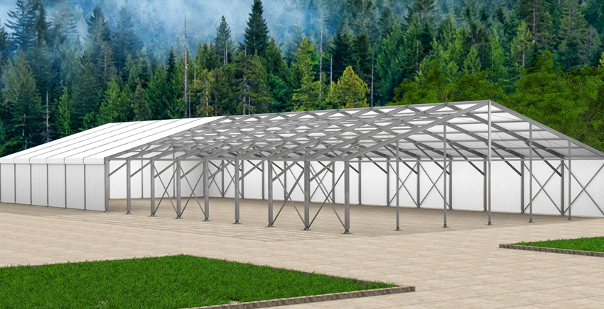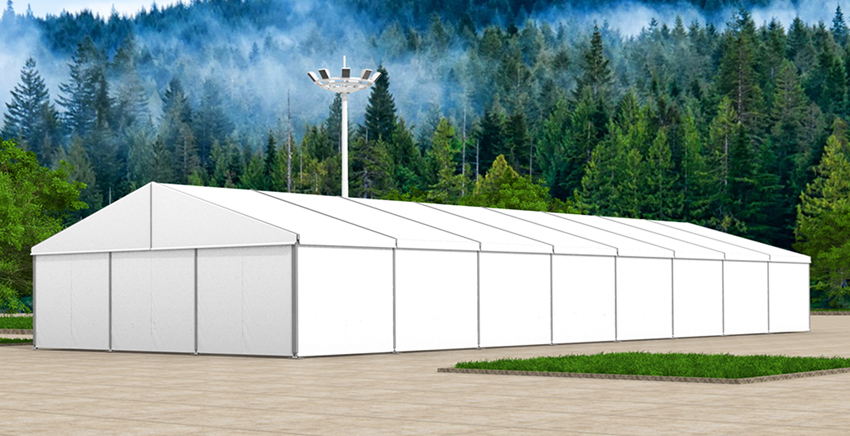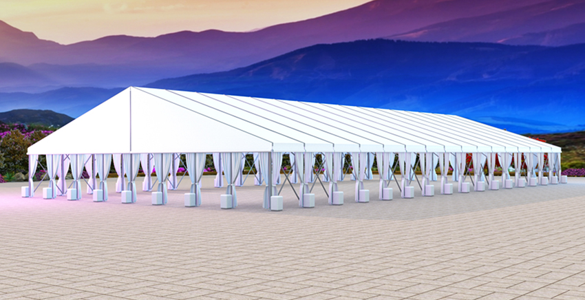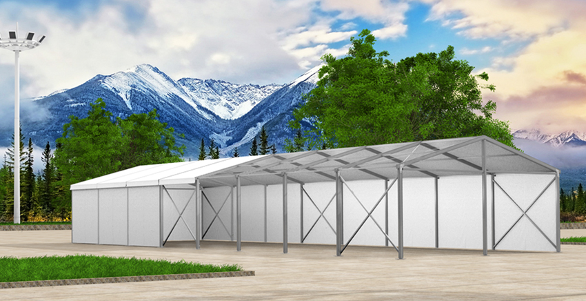 屋脊篷房系列品種繁多,提供從6米到50米的多種跨度。屋脊篷房采用模塊化設計,篷房長度可按3米或者5米的倍數延長。屋脊篷房采用高強度鋁合金型材(6061-T6)作為主框架,外圍采用PVC刀刮涂層布做圍擋。此外,屋脊篷房高適應性的特點,可以讓它融入各種建筑特色,也可以與同類產品,如:如尖頂篷房、多邊型篷房等組合使用。
