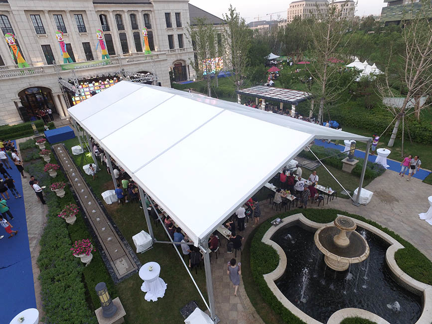 帳篷的面積是固定的,每個規格都有固定的尺寸,不會超過50平米,比較適合旅行及戶外露營,方便攜帶;而篷房屬于單元性組合結構,跨度可以從3-50米不等,長度是3或5的倍數隨意延伸的,多種特定造型滿足不同客戶的需求。且其固定方式也與帳篷有所不同,它可以適用于地面情況是沙地,水泥地,草坪和不能被破壞的地面等。