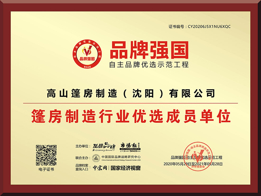 近日,高山篷房制造(沈陽)有限公司,入選了2020年度中央廣播電視總臺“品牌強國工程”。成為篷房制造行業優選成員單位”。高山篷房將依托央視平臺的力量,打造篷房制造品牌名片,助力品牌強國戰略推進。