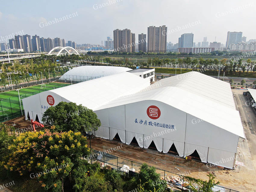 鋁合金裝配式篷房籃球場無需地基搭建,中間也沒有立柱,操作便捷且實用采用模塊化的搭建方式,短期內(nèi)可得到使用對于空間的規(guī)格、配套、結構、型材都是可以定制,滿足場館的空間需求,同時篷房屬于臨時建筑,審批流程相對于傳統(tǒng)建筑是十分簡易