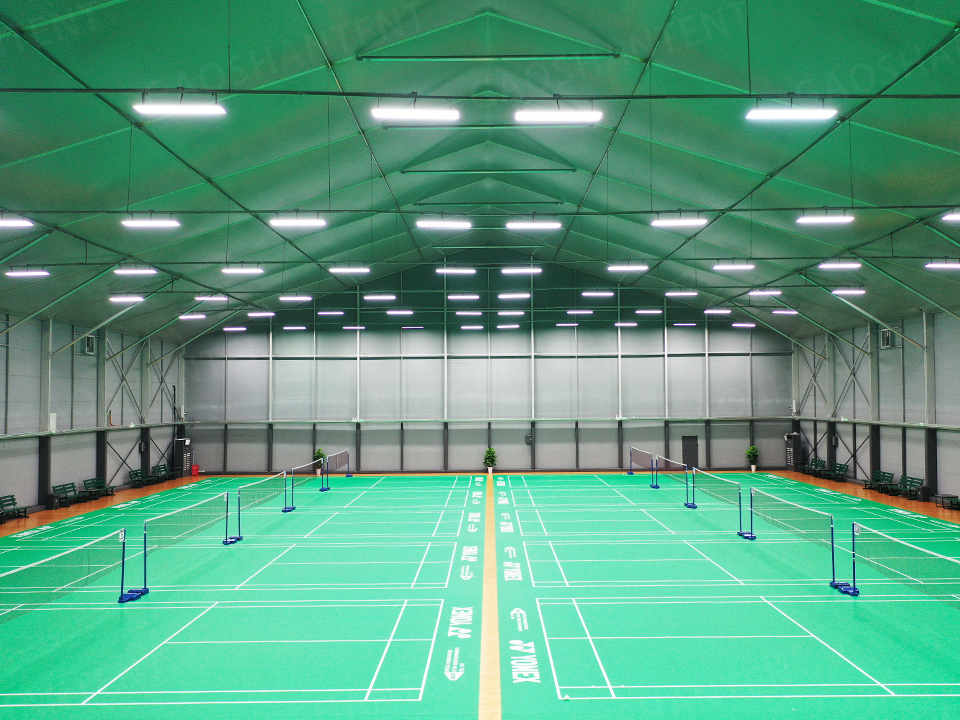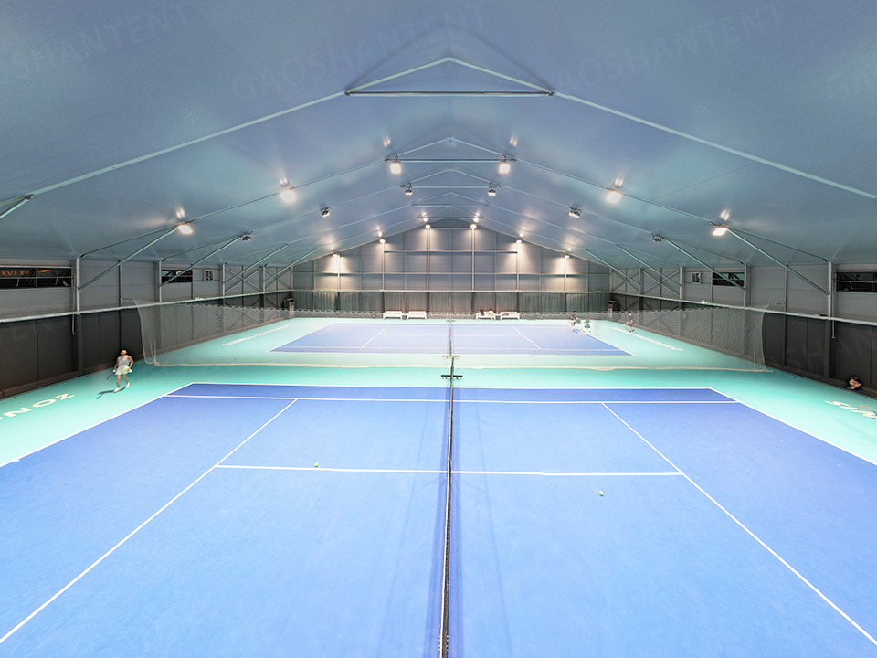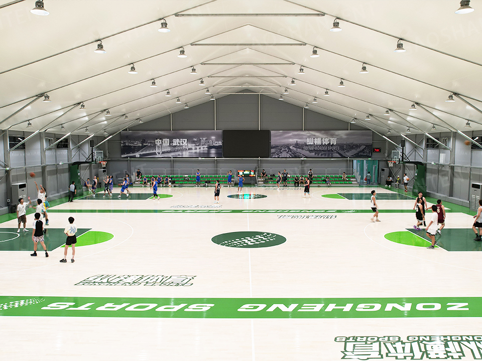 館內(nèi)設(shè)施齊全,配備專業(yè)照明系統(tǒng)和空調(diào)系統(tǒng),頂部篷布加棉設(shè)計(jì)保溫隔熱,顯著降低空調(diào)負(fù)荷。弧形設(shè)計(jì)外觀現(xiàn)代大方,邊高達(dá)7.5米,為球類運(yùn)動提供充足空間。