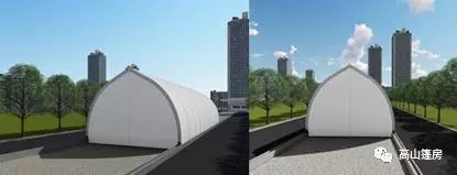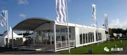傳統(tǒng)人字形篷房因?yàn)榇罅渴褂茫菀桩a(chǎn)生審美疲勞。高山弧形篷房從人字篷房改進(jìn)而來(lái),外觀更像膜結(jié)構(gòu)建筑,輔以飄檐看臺(tái)和新型雨搭,整體營(yíng)造出飄逸美感,適用于體育比賽和高爾夫球場(chǎng)。
