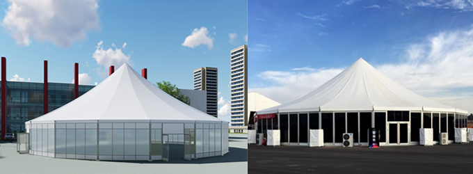 適合搭在較大地面上的多邊形篷房,造型別致,遠遠就能看見,且內部空間寬敞,輕松裝下幾百個標準攤位,尤其適合北方地區(qū)的大型展銷會和集市。