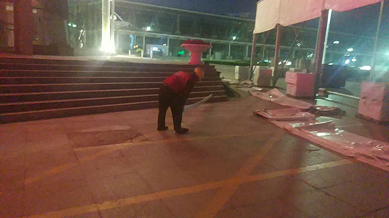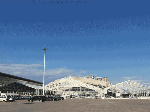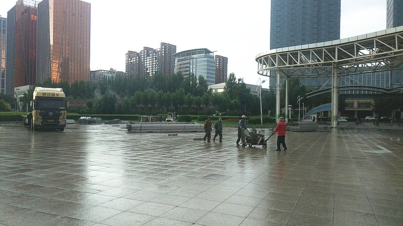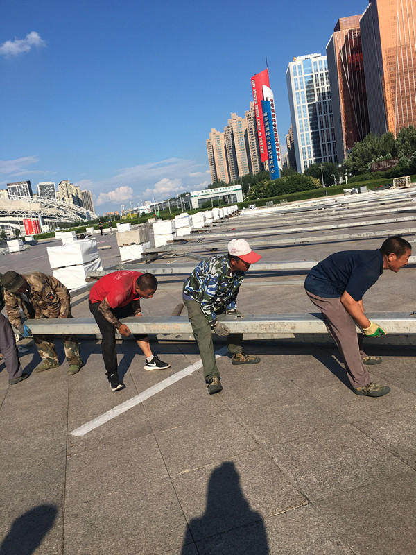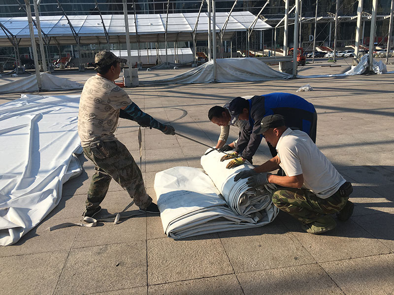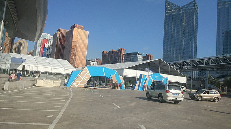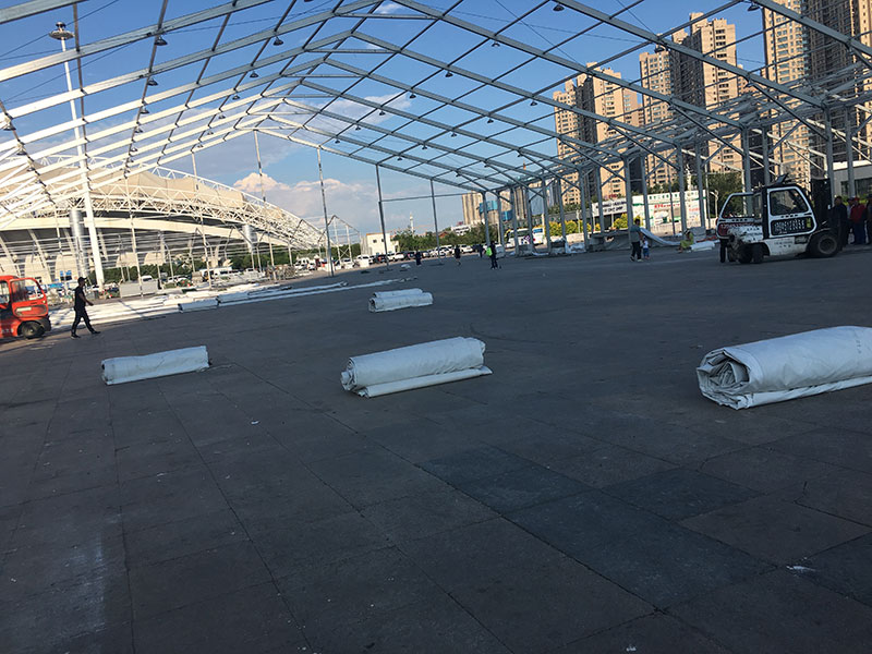 在會展中心的東廣場上,高山的搭建團隊正在開會研討:本次展會所需篷房面積達4000平方米,我們只有四天的時間,在保證工期的前提下,還需保證篷房的質量,有沒有信心?有!