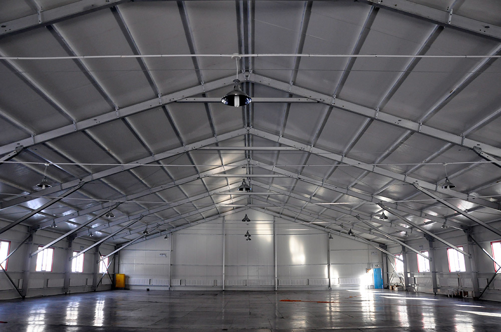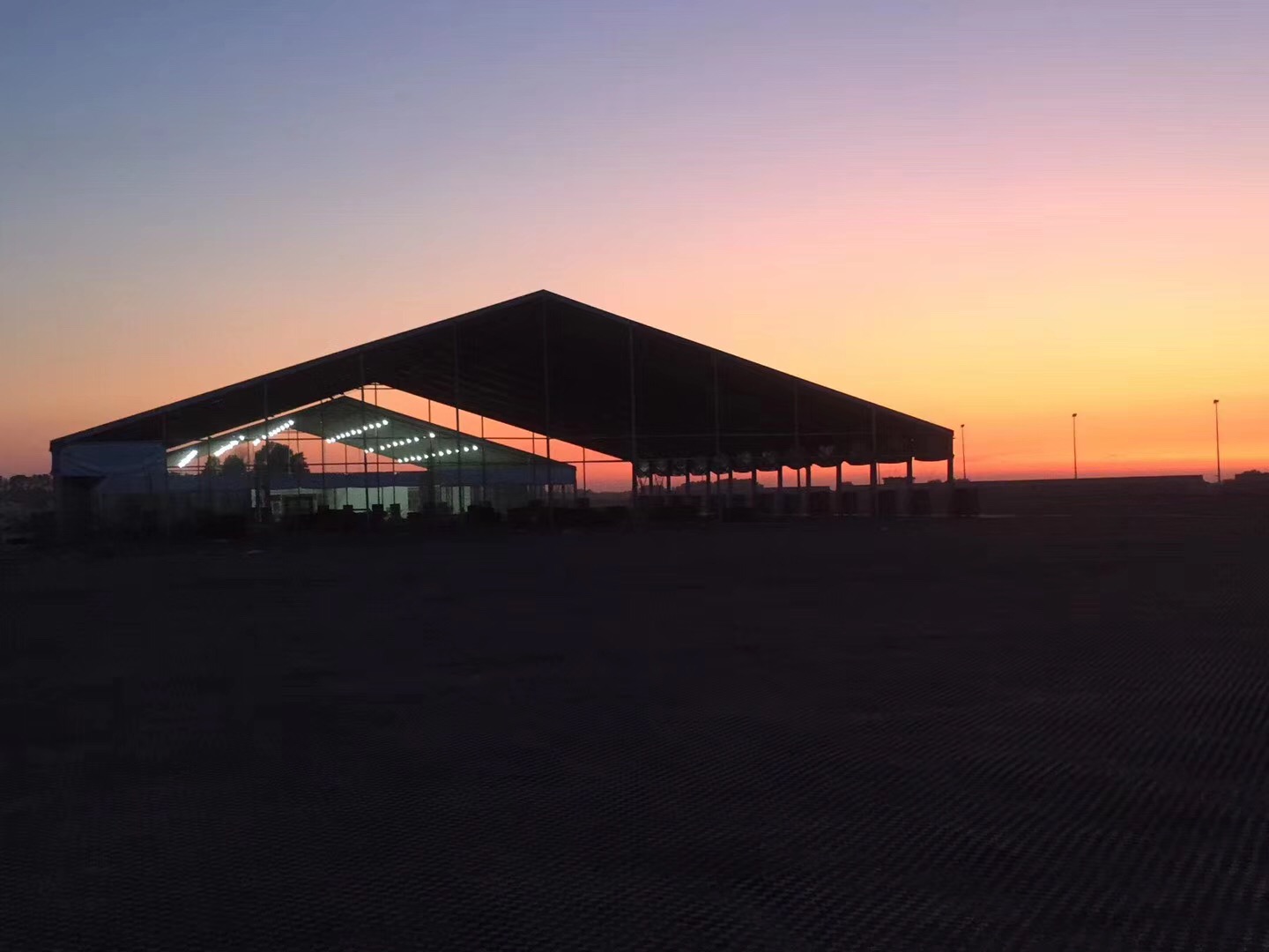 高山環(huán)保篷房屬于裝配式建筑和模塊化生產(chǎn)組合,對地面要求非常低,地基可根據(jù)實(shí)際情況采用不同的配重方式,數(shù)日內(nèi)即可完成上萬平方米的拆裝任務(wù)。