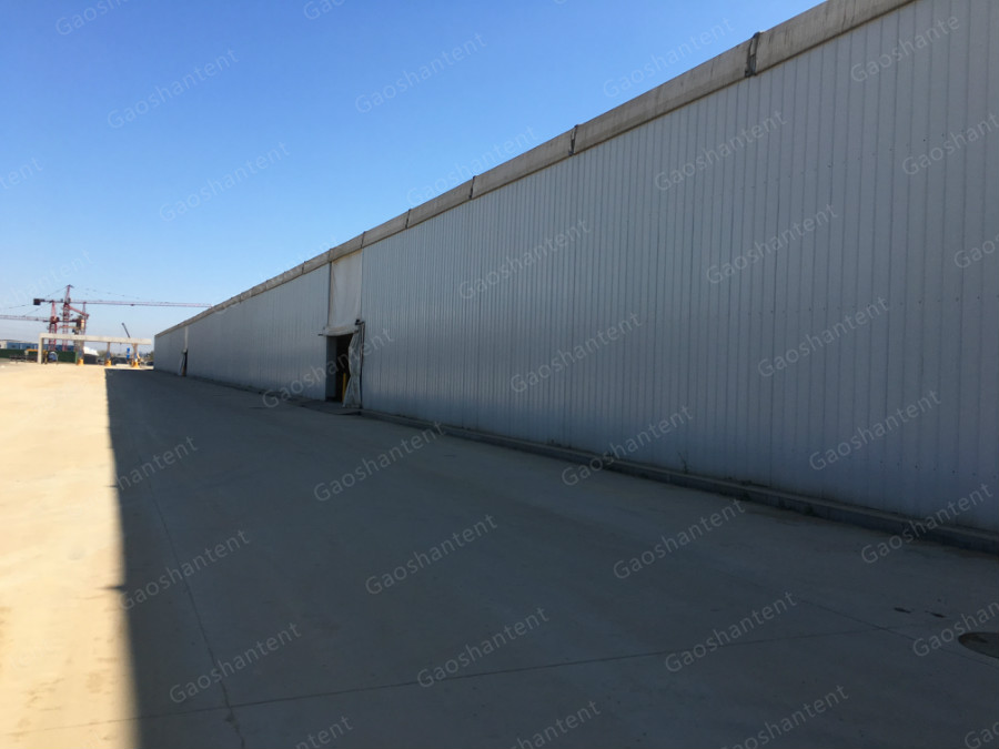 針對煤炭中轉物流園急迫用倉的需求,高山篷房為客戶提供經濟型的倉儲篷房銷售方案。得益于倉儲篷房快速可移動性,以及無需地基處理的優勢,可輕松進行快速拆卸和搬遷再建,不影響園區的整體規劃,目前該集團已與高山達成長期合作關系。