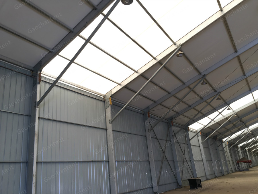 為更好地解決倉庫堆積現象,改善固定倉庫搬遷難的缺陷,高山篷房將原本固定的倉庫建筑變成一個可靈活拆卸、快速搬遷、可重復使用的倉庫篷房,為很多企業解決了倉庫難擴張、難管理的問題。