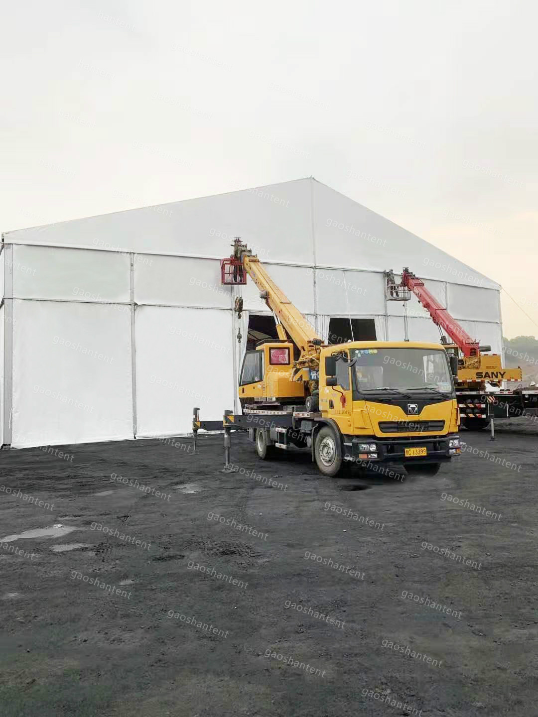 與傳統建筑相比,篷房本身屬于臨時建筑,無需繁復的審批手續,高山利用客戶園區自由場地,建造跨度50m、頂高15m的全鋁合金倉儲中轉空間,隨著加工地點、環保要求的變化,靈活實現可移動,從容解決環保難題。